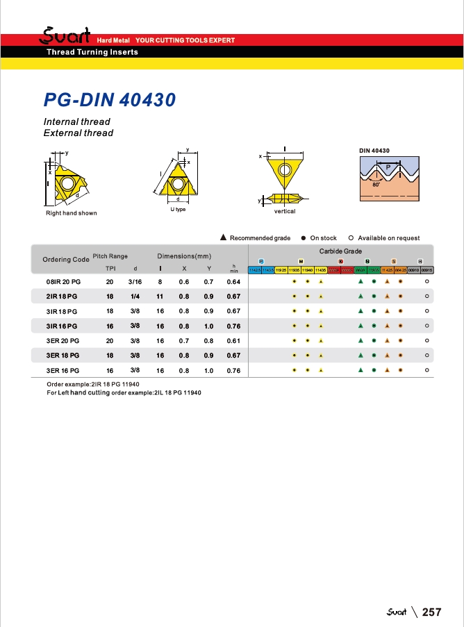 Filetage intérieur, filetage extérieur, plaquettes de tournage PG-DIN 40430