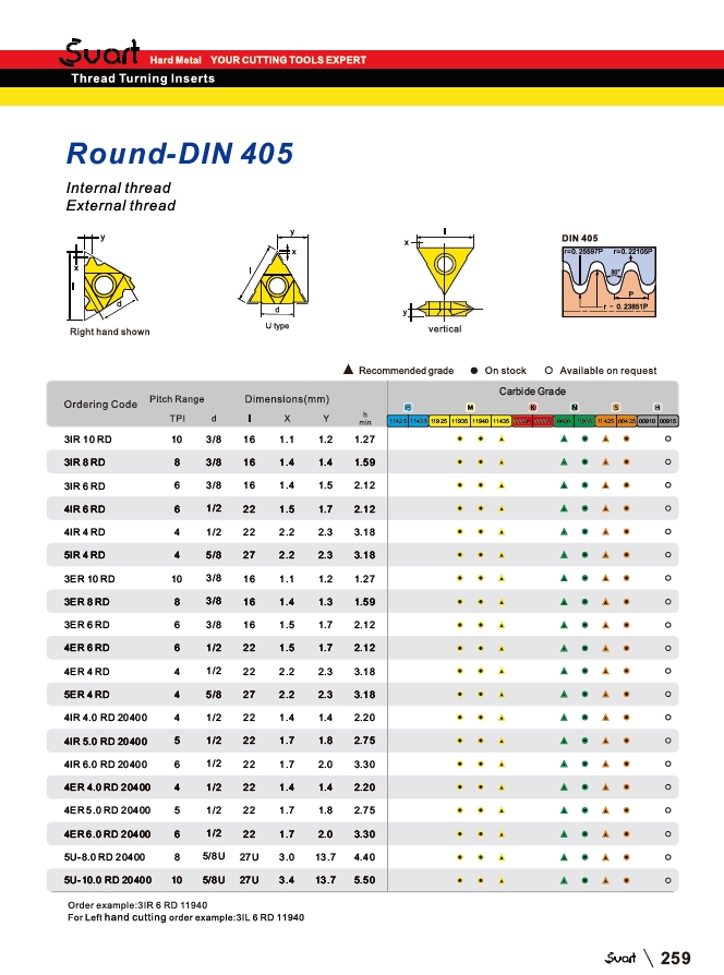 Filetage intérieur, filetage extérieur, plaquettes de tournage rondes DIN 405